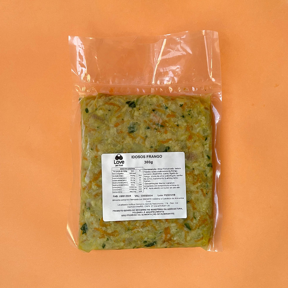 Contém 6 porções de 300g. Composição perfeita para cães idosos acima de 10 anos. Com nutrientes que auxiliam na saúde das articulações, manutenção da musculatura, da um up na energia e ainda deixa o pelo brilhando.